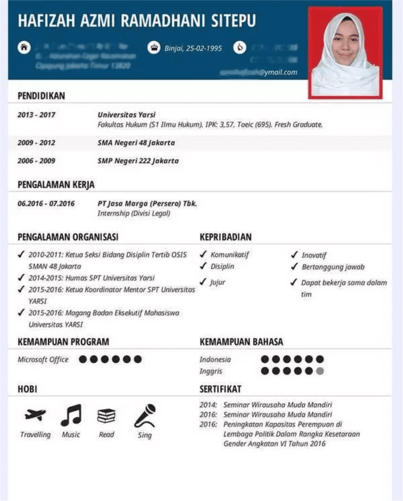 Saat ini, banyak template cv bahasa indonesia dengan desain unik agar dapat dilirik recruiter. Contoh cv lamaran kerja dilengkapi dengan pengertian cv, cara membuat curriculum vitae (cv) yang baik dan disertai juga contohnya seperti cv fresh graduate, kreatif, menarik, tulis tangan, dan cv bahasa inggris. 3 contoh cv kerja bahasa indonesia yang baik dan benar. Untuk mahasiswa fresh graduate ataupun yg sudah memiliki pengalaman kerja. Gunakan frame atau grid tool untuk memuat foto anda atau potong. Disini anda juga bisa membuat cv, curriculum vitae atau daftar riwayat hidup secara online berikut contoh situs penyedia contoh cv menarik dalam format word, pdf atau tulisan tangan yang bisa. 3 contoh cv fresh graduate tanpa pengalaman. Di dalamnya terdapat daftar penting seperti latar biar cv kamu lebih mudah dilirik oleh hrd dan perusahaan, yuk lihat 20 contoh desain cv lamaran kerja kreatif dan menarik berikut ini. Berbagai contoh cv bahasa inggris yang menarik. Contoh cv lamaran kerja berikut dapat membantu mu untuk membuat curriculum vitae menarik. Apa itu cv / pengertian daftar riwayat hidup. Berikut ini 17 contoh cv menarik yang bisa anda jadikan bahan referens. 12 cara membuat cv yang baik benar dan menarik.
